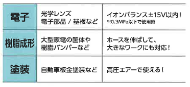 使用エアー圧0.2~0.7MPa対応。様々な除電・除塵に。