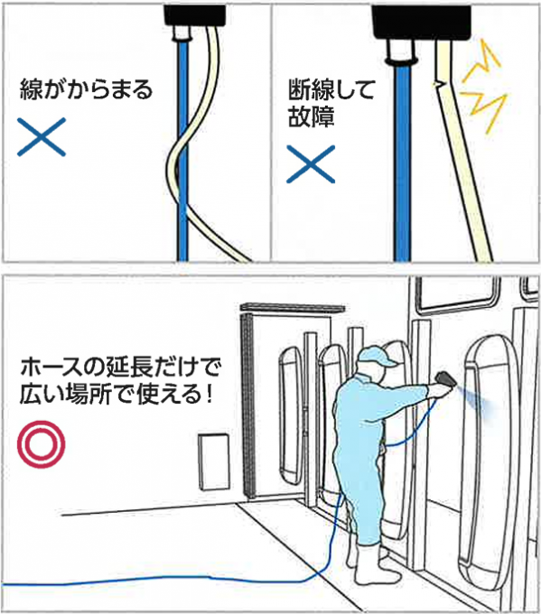 ・実作業に合ったノズル方向 ・小型、軽量で作業ストレス軽減
